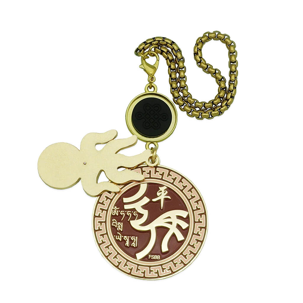 Suspending the main medallion is a striking fireball charm engraved with the Li Hexagram, representing Great Fire. This symbol does not destroy recklessly; instead, it illuminates truth and burns away hostility, resentment and ill intent with clarity and purpose.