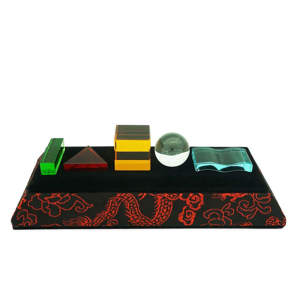 This special cure is known as the “Mm Harng Charn”, or better translated to become the PRODUCTIVE 5 ELEMENT CURE. It had been derived from the principles of 4-Pillars of Destiny and the controlling-producing cycle of 5 Elements. Feng shui masters from authentic schools would commonly remedy all directional problems with 5 Element Method. But the wiser ones will further apply the boosting method based on the productive cycle to maximize the remedy. That being the reason why those with feng shui eyes will be able to see this powerful application all over asian countries that built their cities with Feng Shui. The PRODUCTIVE 5 ELEMENT CURE is the most effective cure for almost ALL situations. Those who are familiar with the popular five element pagoda will probably see these pieces as individual elements dismantled from it. Yes, that is correct in a way. These are a set of 5 individual pieces made from crystals and shaped according to their elements. And 5 elements are the basis and fundamental of where all cures and enhancers were derived.