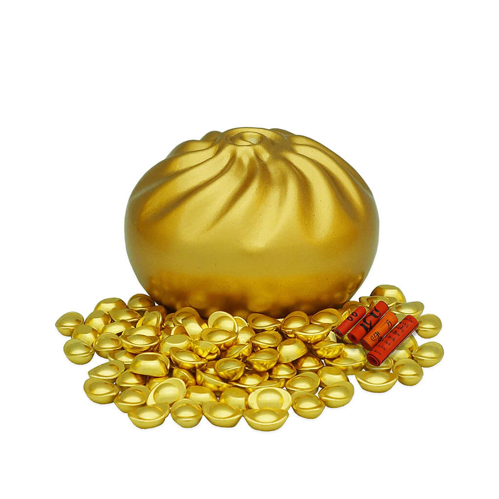 When elevated into a gold treasure form, the Bao becomes a cheerful yet potent Feng Shui cure — reminding us that wealth should come with joy, ease, and satisfaction. Its rounded, plump shape signifies fullness and completion, while its golden color resonates with the Metal element, strongly linked to money, success, and valuable resources.